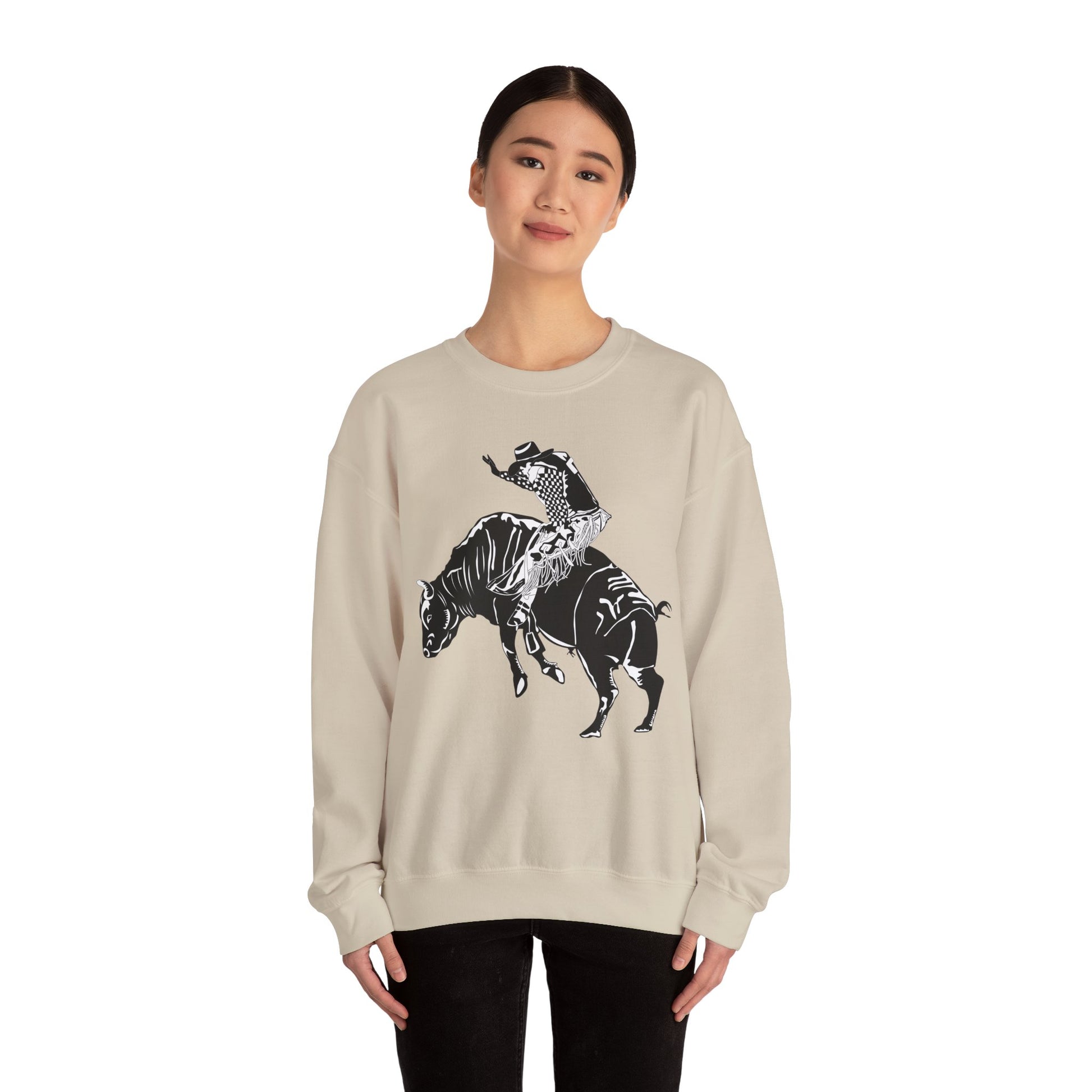 Crewneck Sweatshirt - Cowboy - Bull Rider - BW